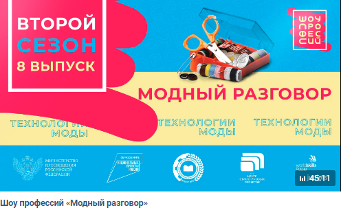 10 ноября в 11:00 МСК в рамках федерального проекта «Успех каждого ребёнка» состоится трансляция восьмого выпуска профориентационных уроков «Шоу профессий», который посвящён компетенции «Технологии моды