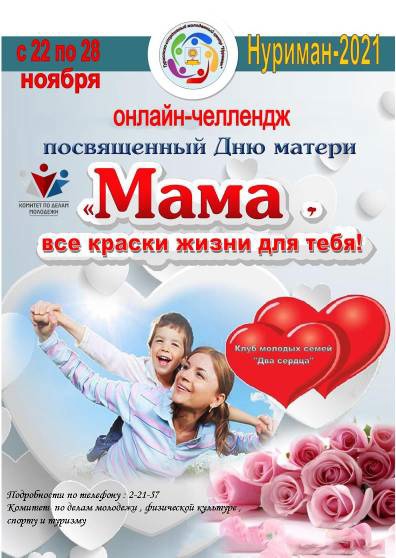 В период с 22 по 28 ноября 2021 года приглашаем нуримановцев принять участие в онлайн-челленджах ко Дню матери