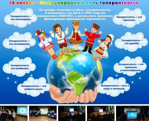 В этот день 16 ноября, с обучающимися школы были проведены беседы. Ребята узнали, что такое толерантность, происхождение термина, какие черты характера присущи толерантной личности, выбрали слова определяющие качество толерантности. В дружественной атмосфере, все вместе научились уважать друг друга, быть дружелюбнее и вежливее.