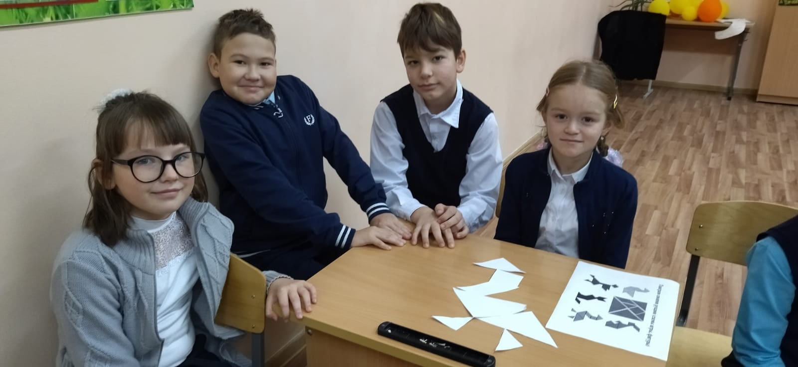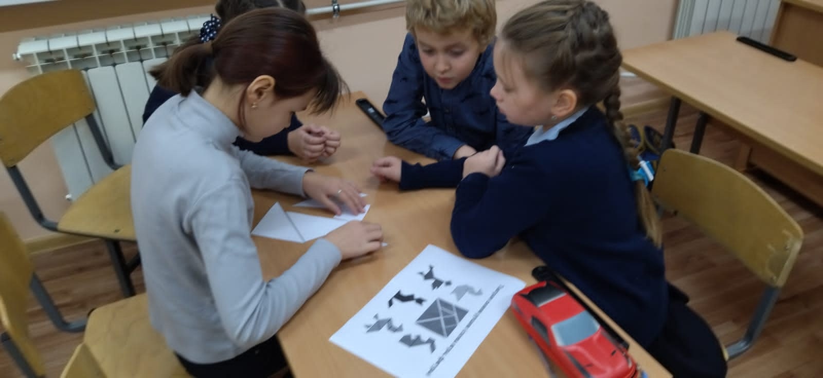 Уже сегодня на занятии "Нескучная математика" учащиеся 3б класса познакомились с головоломкой Танграм. Ребята не только складывали фигурки животных, но и прорешали числовые ребусы.