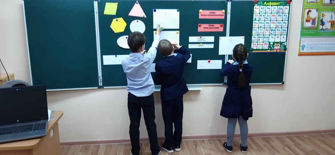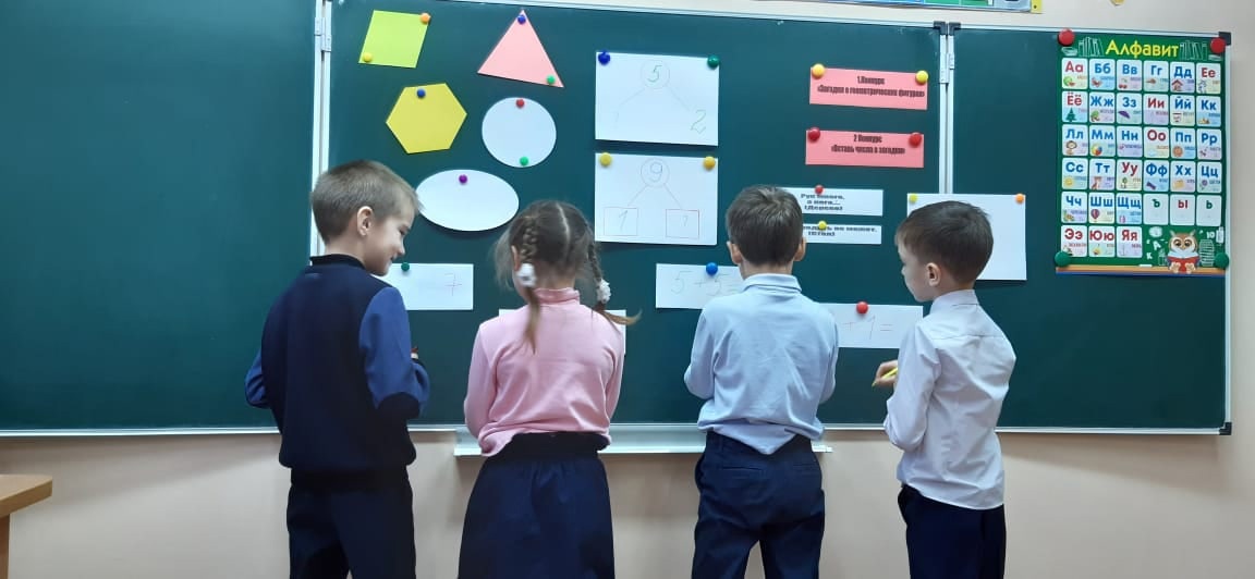 "Весёлый счёт" - мероприятие под таким названием прошло у первоклассников. Ребята познакомились с различными геометрическими фигурами, решали весёлые примеры и задачи.