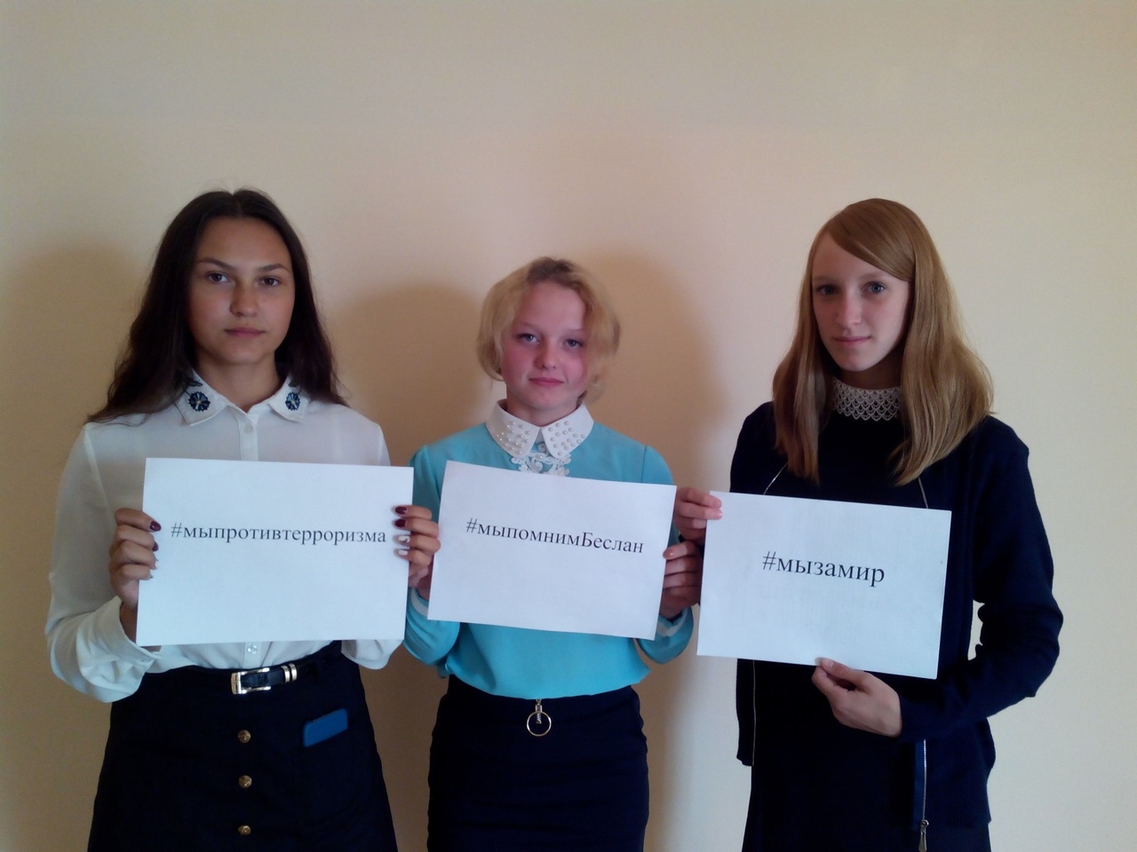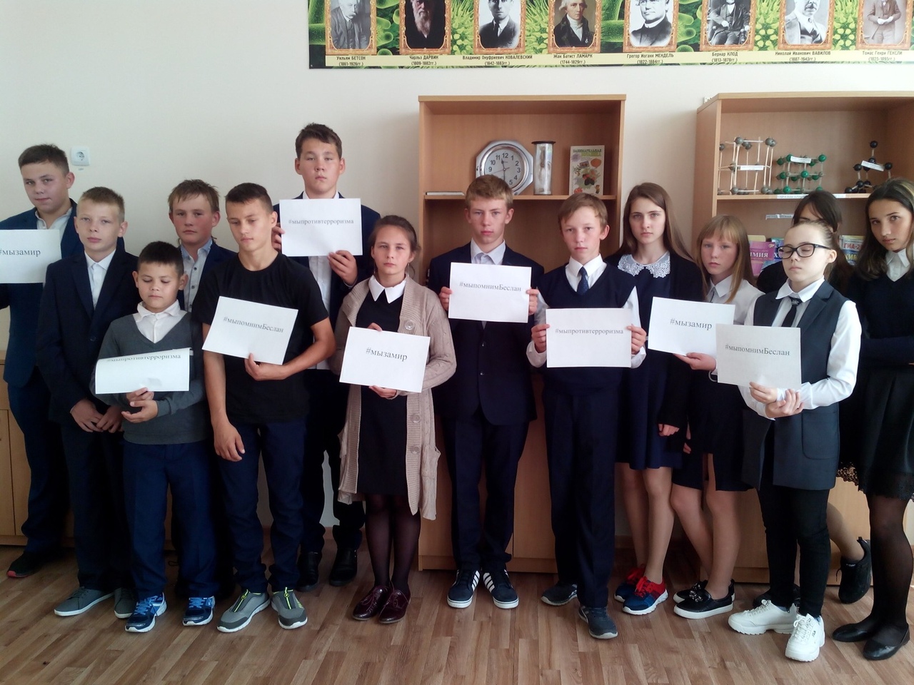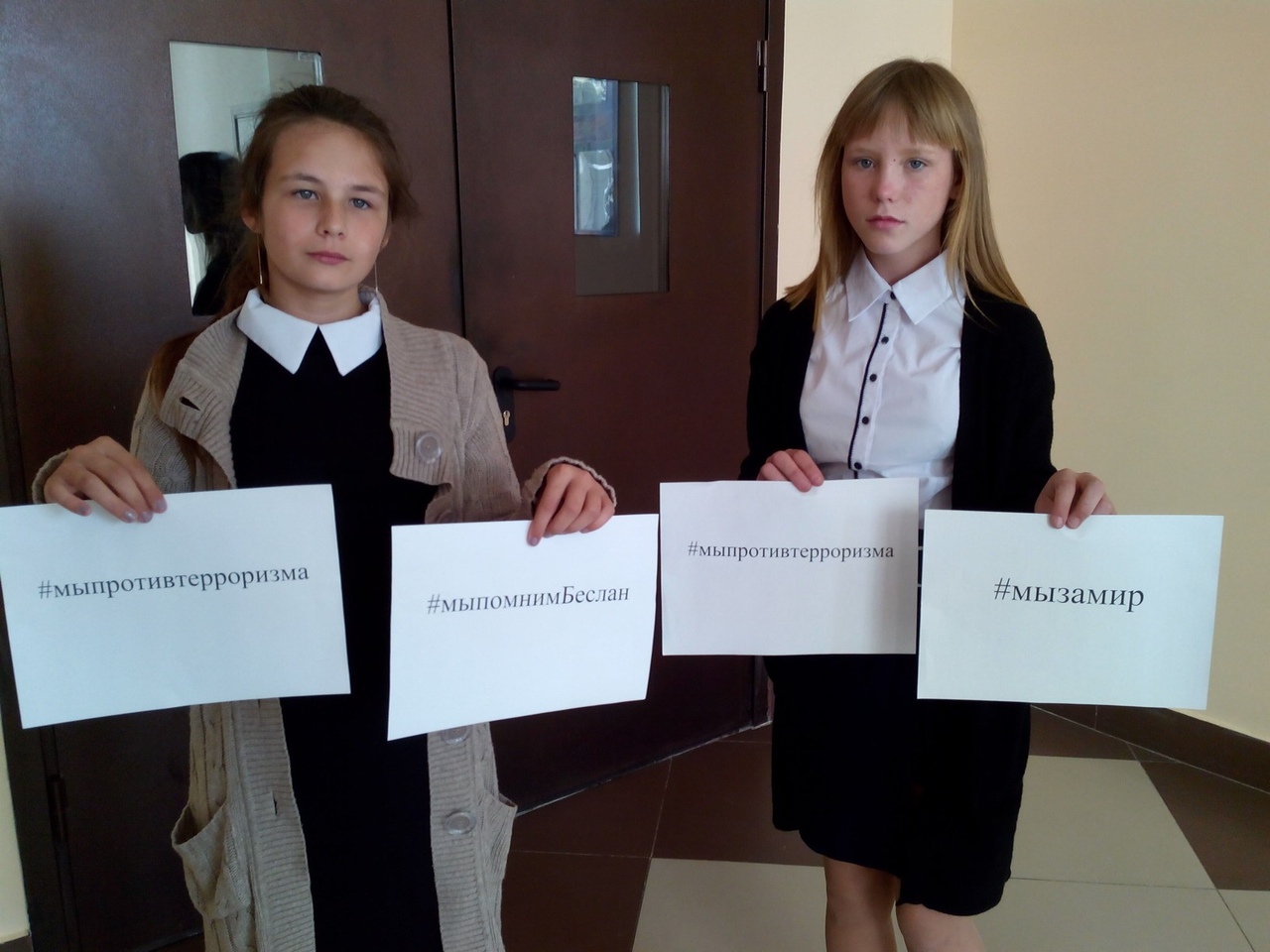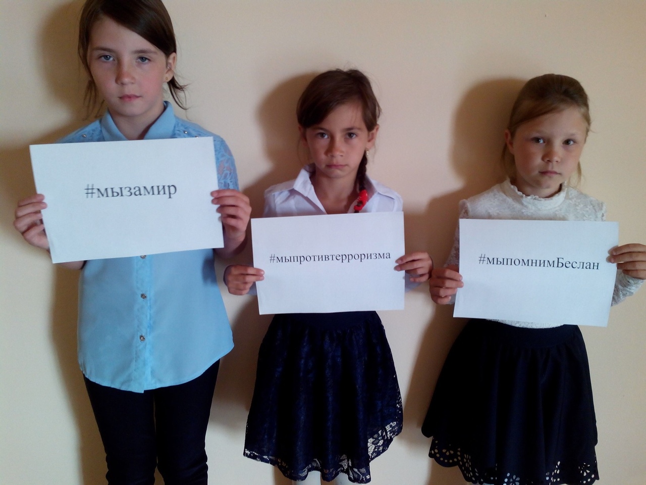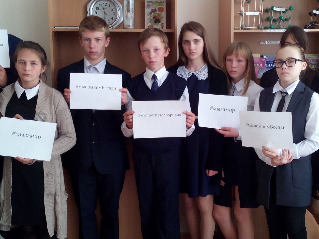 Сегодня, 3 сентября - в День памяти жертв терроризма, в нашей школе был запущен фотофлешмоб с хештегом "#мыпомнимБеслан", "#мызамир", "#мыпротивтерроризма". Мы помним и чтим память жертв террористической атаки на школу в Беслане и склоняем головы в память о всех людях, погибших от рук террористов!