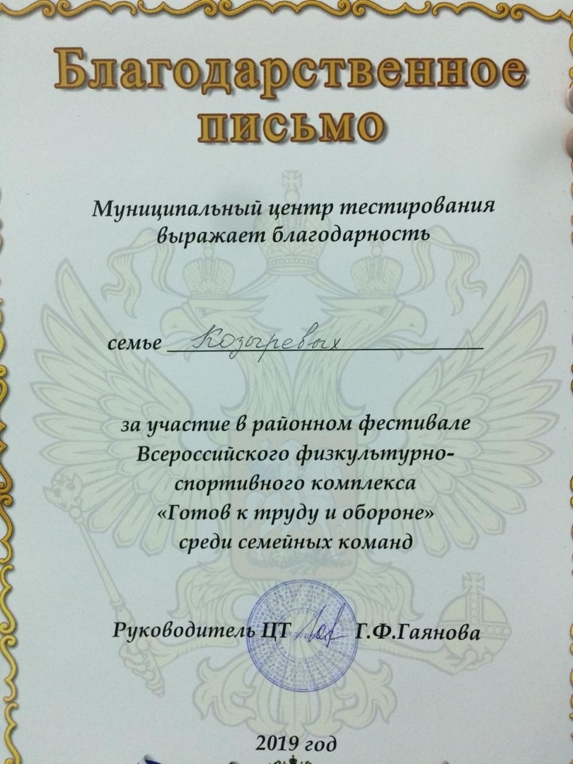 Лященко заняла третье место, семья Козыревых получила благодарственное