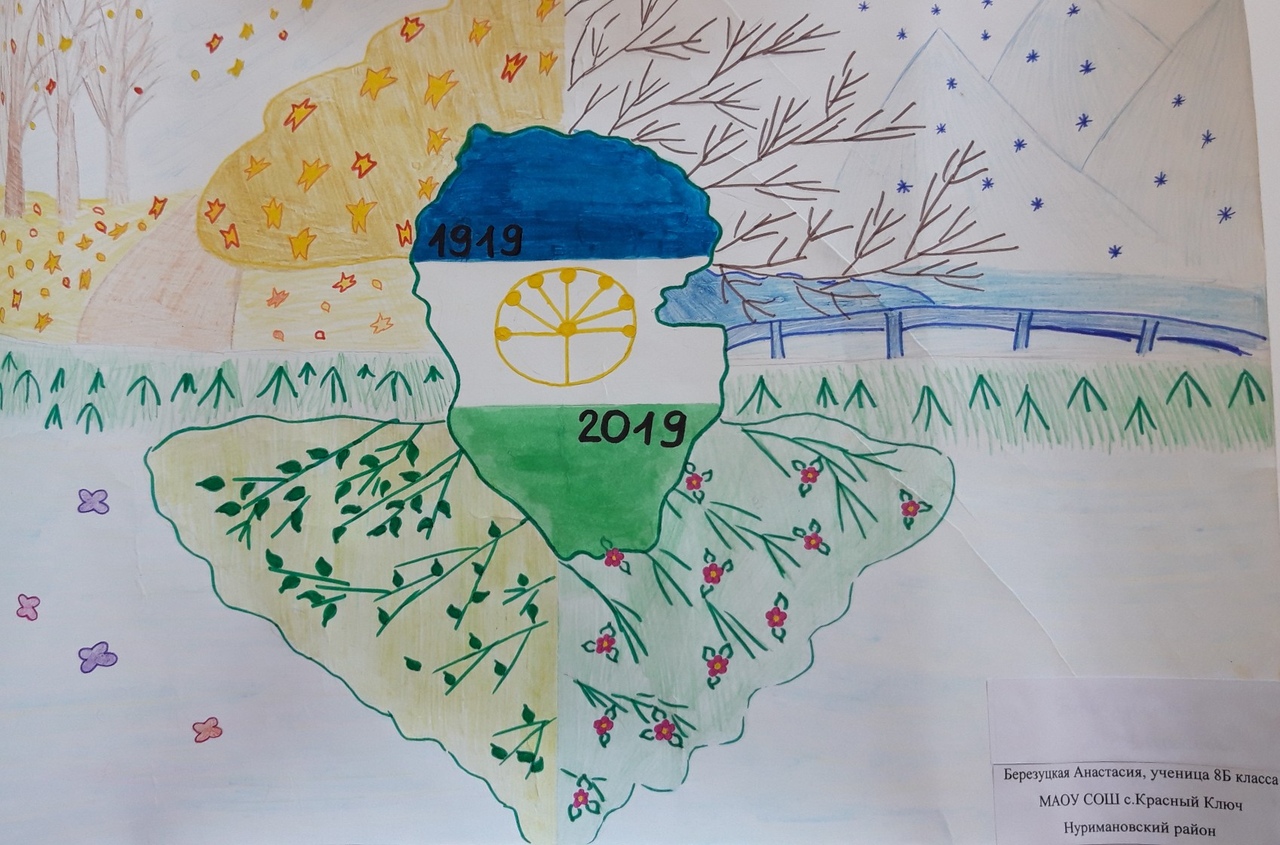 Вот такие чудесные работы подготовили наши талантливые ученики на конкурс рисунков, посвященный 100-летию Республики Башкортостан. Рисунки были отобраны и будут принимать дальнейшее участие в районном конкурсе.