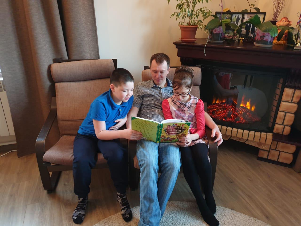 читают "Русские народные сказки" и всем рекомендуют читать книги дома.