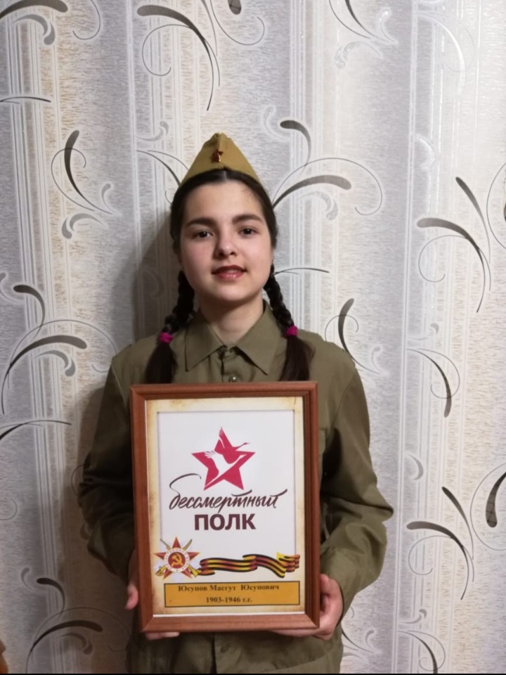 Латыпова Гульнара, ученица 8б класса, присоединяется к акции "Бессмертный полк".