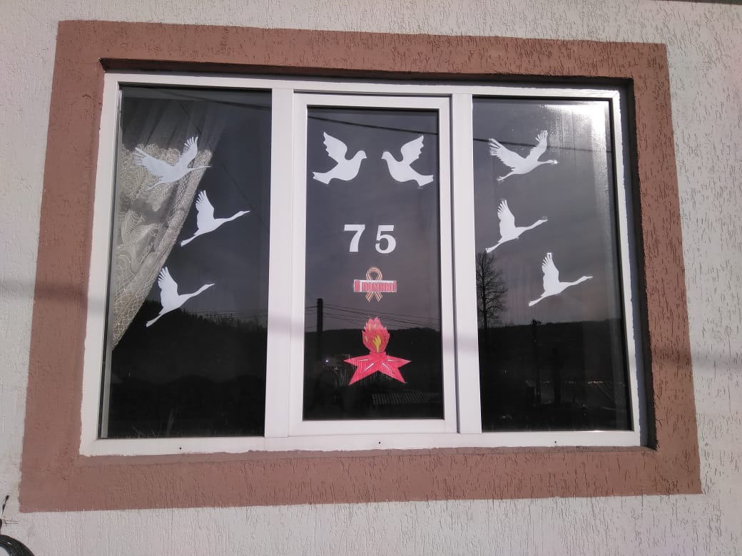 Саламатова Анастасия и Гильмияров Линар, обучающиеся 8б класса, присоединяются к акции "Окно Победы"