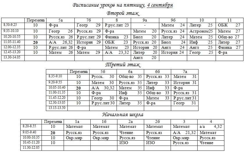 Расписание звонков