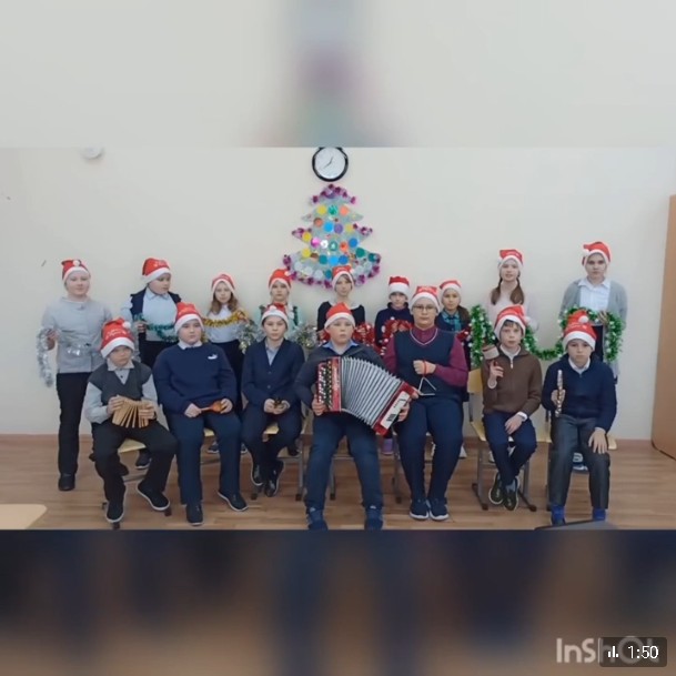 Ученики 5а класса исполнили песню "В лесу родилась ёлочка".