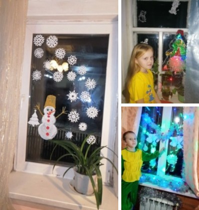 Новогодние окна от Шестакова Михаила, Березуцкой Ольги, Музафарова Тимура. 1б класс.