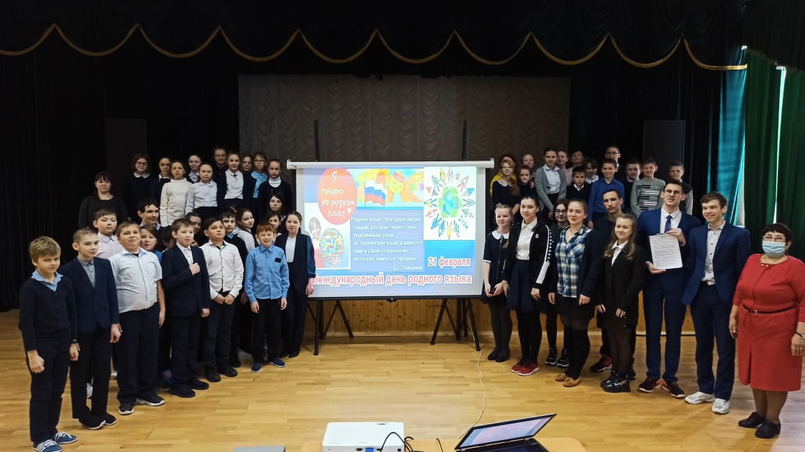 20 февраля в рамках празднования Международного Дня родного языка в актовом зале школы прошло торжественное мероприятие "Родной язык дорог каждому из нас!". Ведущие праздника - Гумерова Алина и Сычев Никита рассказали всем присутствующим об истории праздника, о величии и богатстве родного языка, о необходимости беречь свой родной язык. Затем представители из 5-11 классов прочитали наизусть стихотворения известных писателей и поэтов. Мероприятие сопровождалось мультимедийной презентацией. Ребята спели песню "Я, ты, он, она - вместе целая страна". В конце праздника учитель русского языка и литературы Ахмадиева Зульфира Сагетдиновна рассказала о важности изучения родных языков, о том, что каждый язык по-своему богат, красив и оригинален. Также зачитала стихотворение на родном языке. Благодарим всех за участие и проведение мероприятия!!!