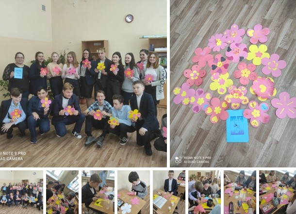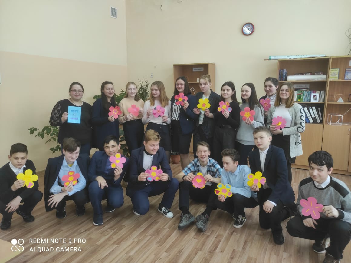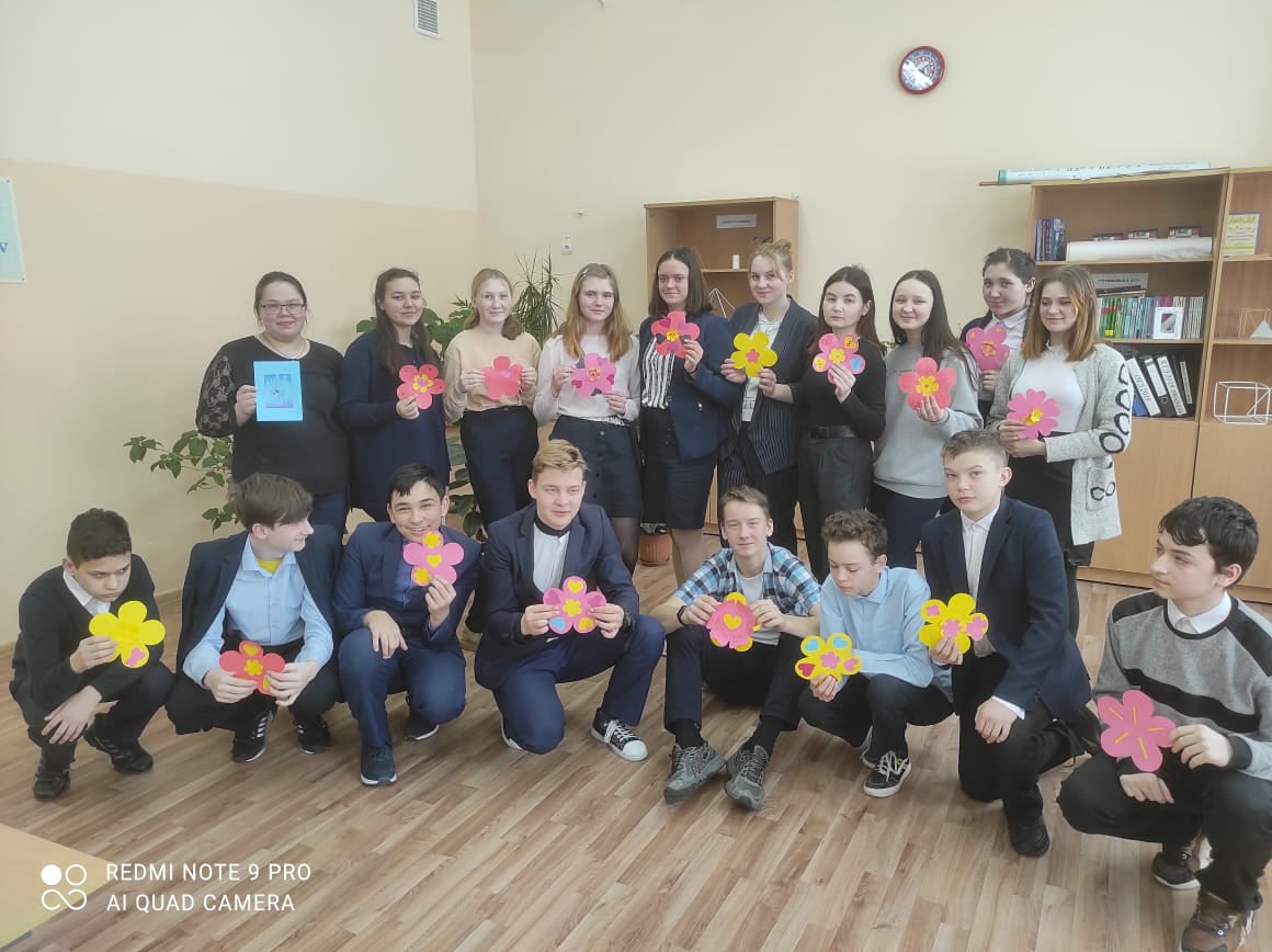 Обучающиеся 8 класса подготовили поздравительные открытки своим любимым мамам на 8 Марта.