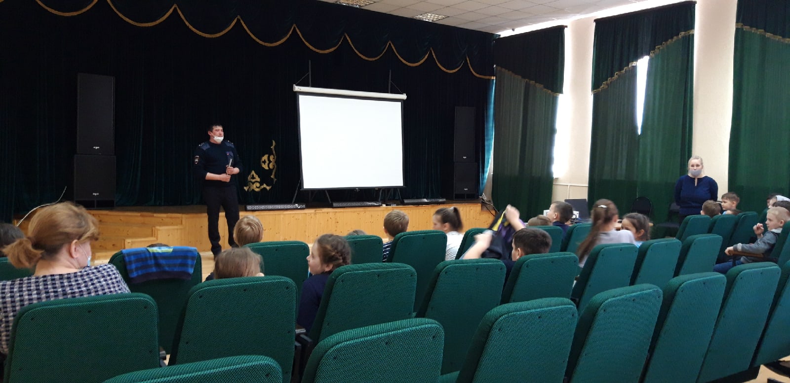 Сегодня наш лагерь посетили гости. В актовом зале начальник отдела ГИБДД ОМВД России по Нуримановскому району Хабибуллин В.М. провел для детей беседу по правилам дорожного движения, также ответил на все вопросы ребят. Затем все отправились на улицу, где смогли посмотреть на машину сотрудников ГИБДД.