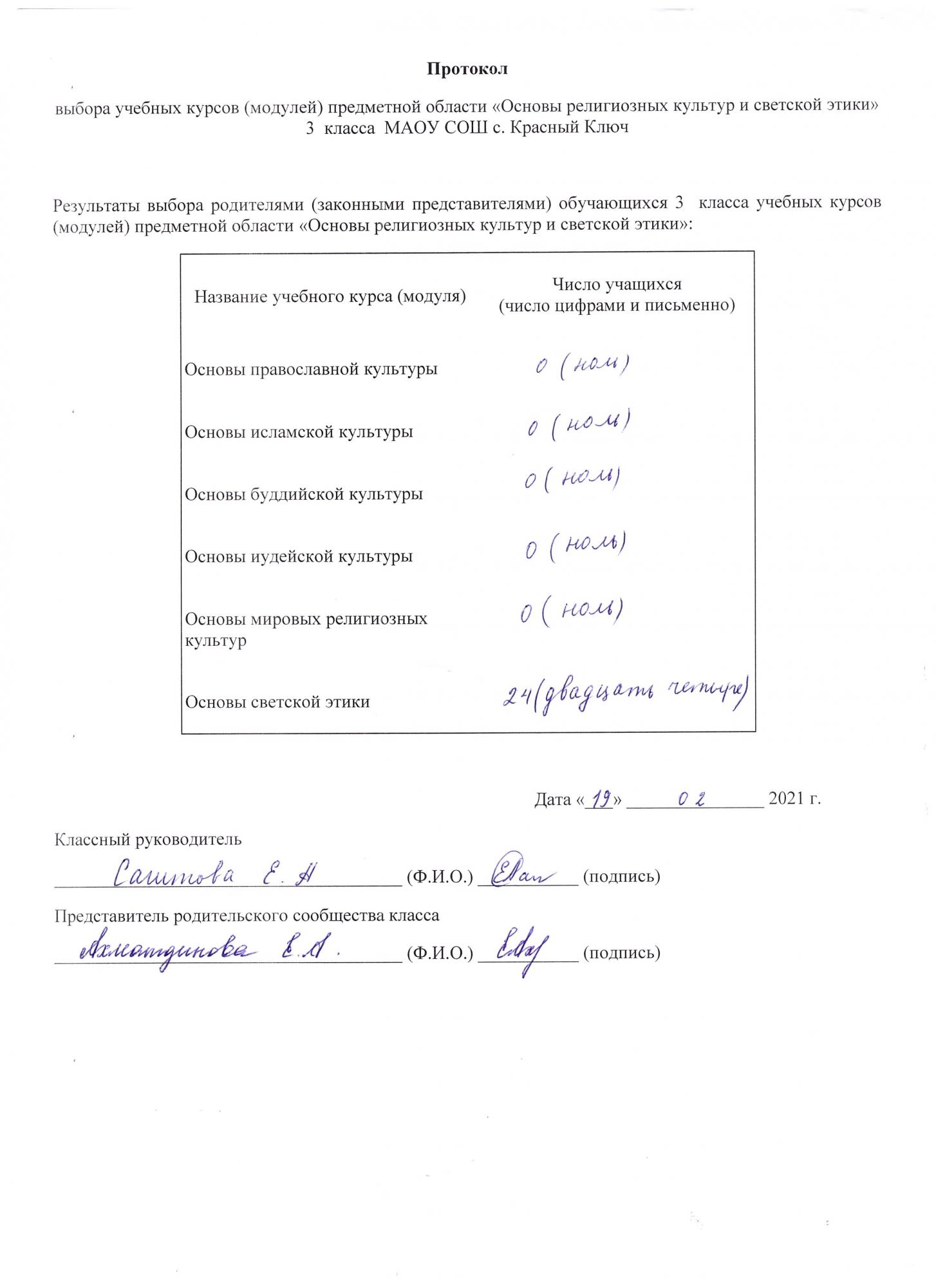 Ежегодно в МАОУ СОШ с. Красный Ключ проводится родительское собрание по выбору одного из 6 модулей обязательного учебного курса ОРКиСЭ родителями учащихся 3-х классов для своих детей на предстоящий учебный год.