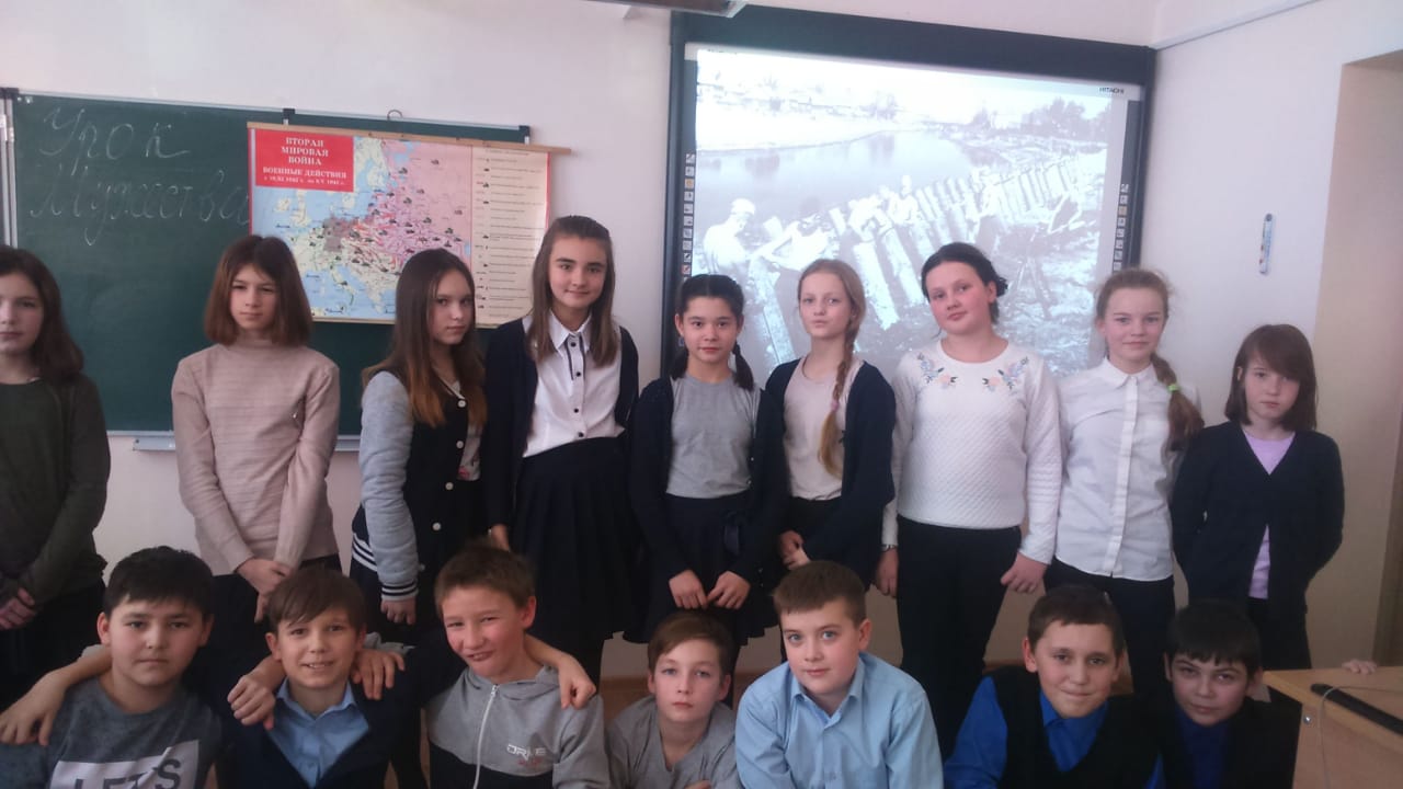 На фото: Уроки мужества в пятых классах, учитель Гизуллина Альфира Фаттаховна.