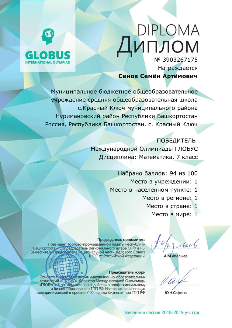 Сегодня мы поздравляем Сенова Семёна, показавшего отличные результаты в олимпиаде «Глобус» по математике, информатике, физике. Пусть эти дипломы вдохновляют и Семёна, и других ребят на достижение новых успехов!