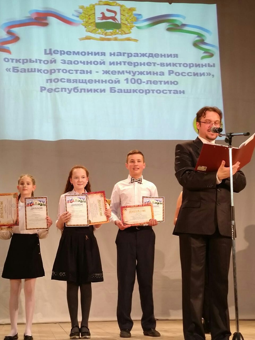8 апреля на базе ФГБОУ ВО «Башкирский государственный университет» состоялось награждение победителей и призеров открытой заочной интернет-викторины «Башкортостан – жемчужина России», посвященной 100-летию Республики Башкортостан. Среди награжденных учащиеся нашей школы Байдуганова Анна и Сенов Семен. Подготовила ребят Гизуллина Альфира Фаттаховна. Поздравляем с победой!