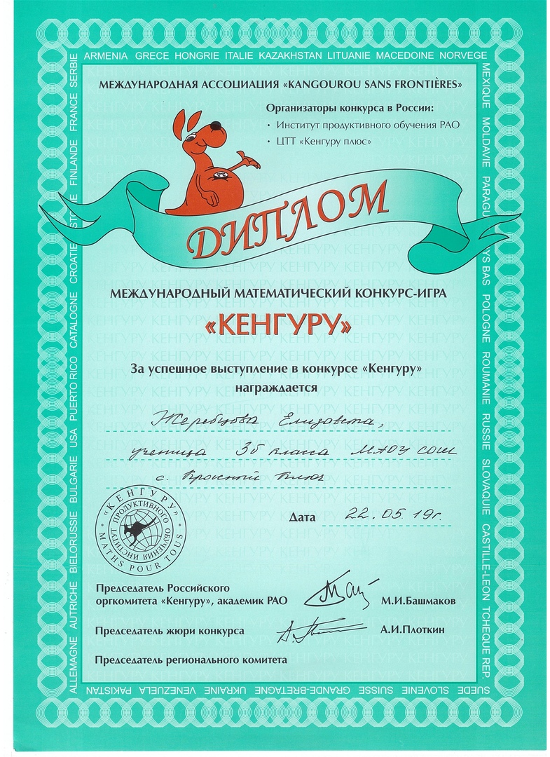 А еще мы поздравляем ребят, показавших отличные результаты в международном математическом конкурсе-игре «Кенгуру-2019». Этот конкурс всегда пользовался популярностью в нашей школе. Почему? Все потому, что задания подбраны таким образом, что их обдумывание становится делом живым, увлекательным, и даже веселым не только для детей, но и для взрослых! И еще один важный фактор: организаторы игры каждому участнику вручают сертификат и дарят маленький сувенир: наклейка, закладка, магнит, фирменная шариковая ручка, сборник заданий прежних лет…