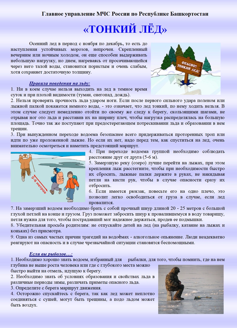 1. Соблюдайте элементарные правила безопасности на льду, помните, безопасным лед считается при толщине не менее 12 см.