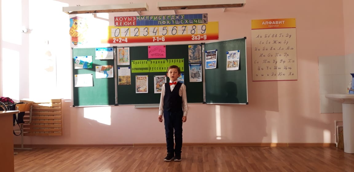 Конкурс чтецов "Красота родной природы в стихотворениях русских поэтов" состоялся 29 ноября в начальной школе. Участники конкурса представили на суд зрителей и строгого жюри произведения А.С. Пушкина, М.Ю. Лермонтова, С.А. Есенина, Е. Благининой. Победители конкурса будут определены в самое ближайшее время.