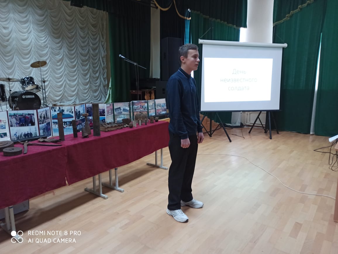 3 декабря в России отмечается памятная дата – День Неизвестного Солдата – в память о российских и советских воинах, погибших в боевых действиях на территории страны или за её пределами. В нашей школе прошло мероприятие, посвященное этой дате.
