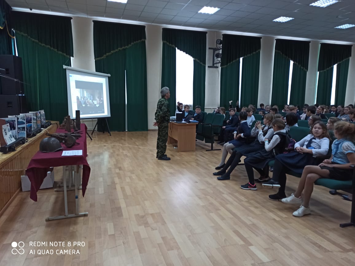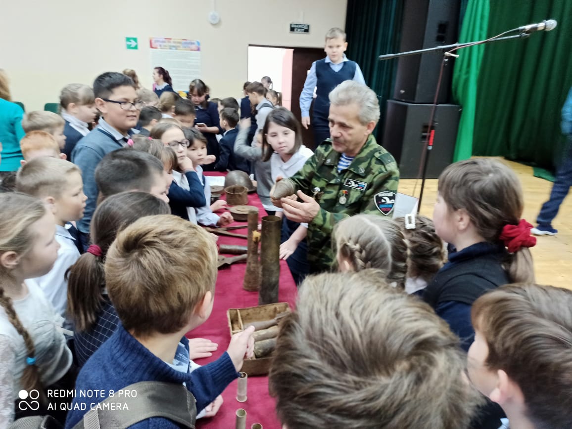 К нам в гости приехал руководитель поискового отряда "Память" при МБУ ТСМЦ "Нуриман" МР Нуримановский район Хафизов Г. З. Он рассказал детям о бессмертном подвиге советских людей, о героической защите от фашистских захватчиков, о солдатах, не вернувшихся с войны, о поисковых отрядах. Также ознакомил ребят с работой отряда, показал фотографии с раскопок и военное оружие, обнаруженное на раскопках.