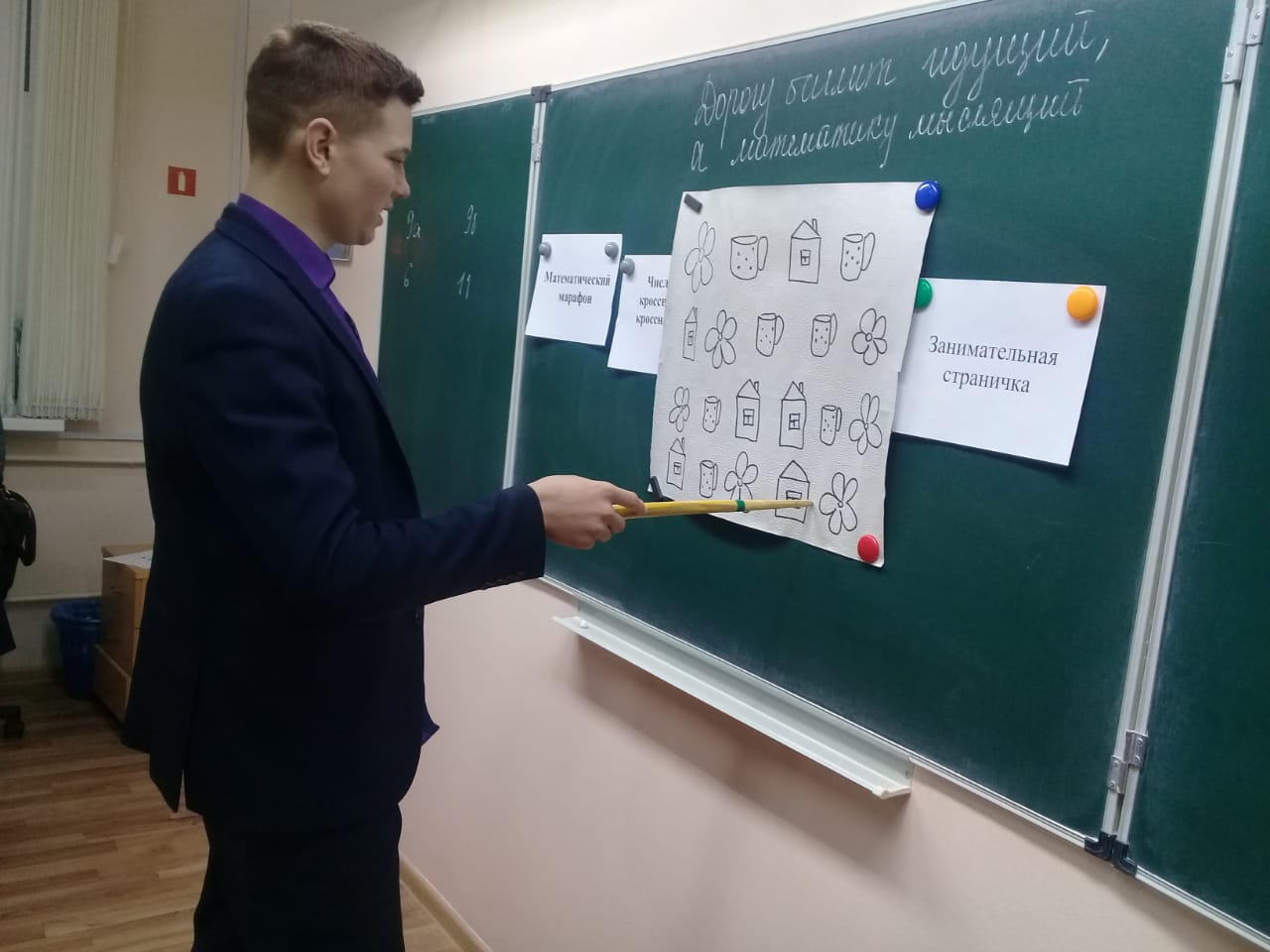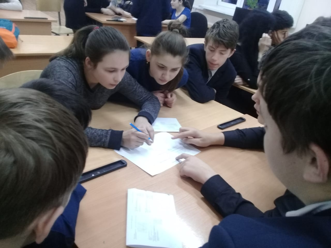 "Математический бой" команды 9а и 9б классов. Ребята разгадывали