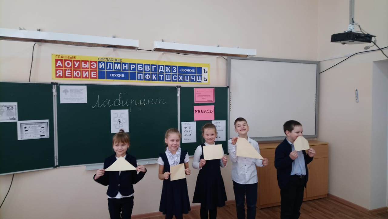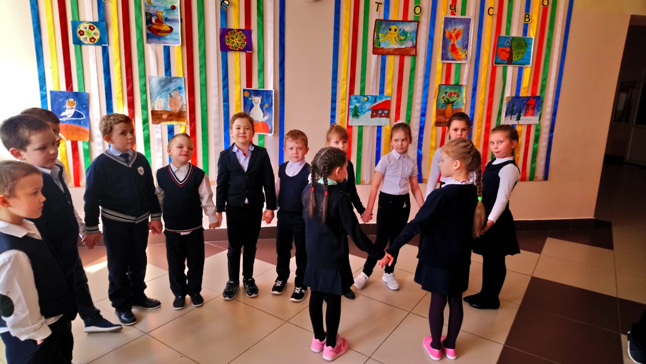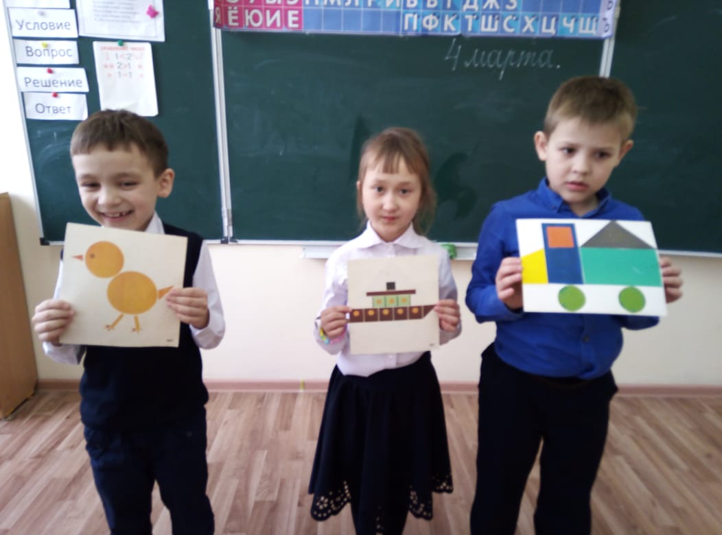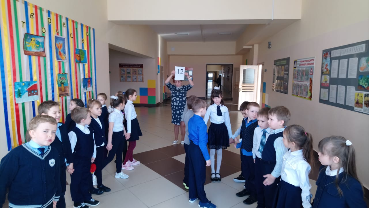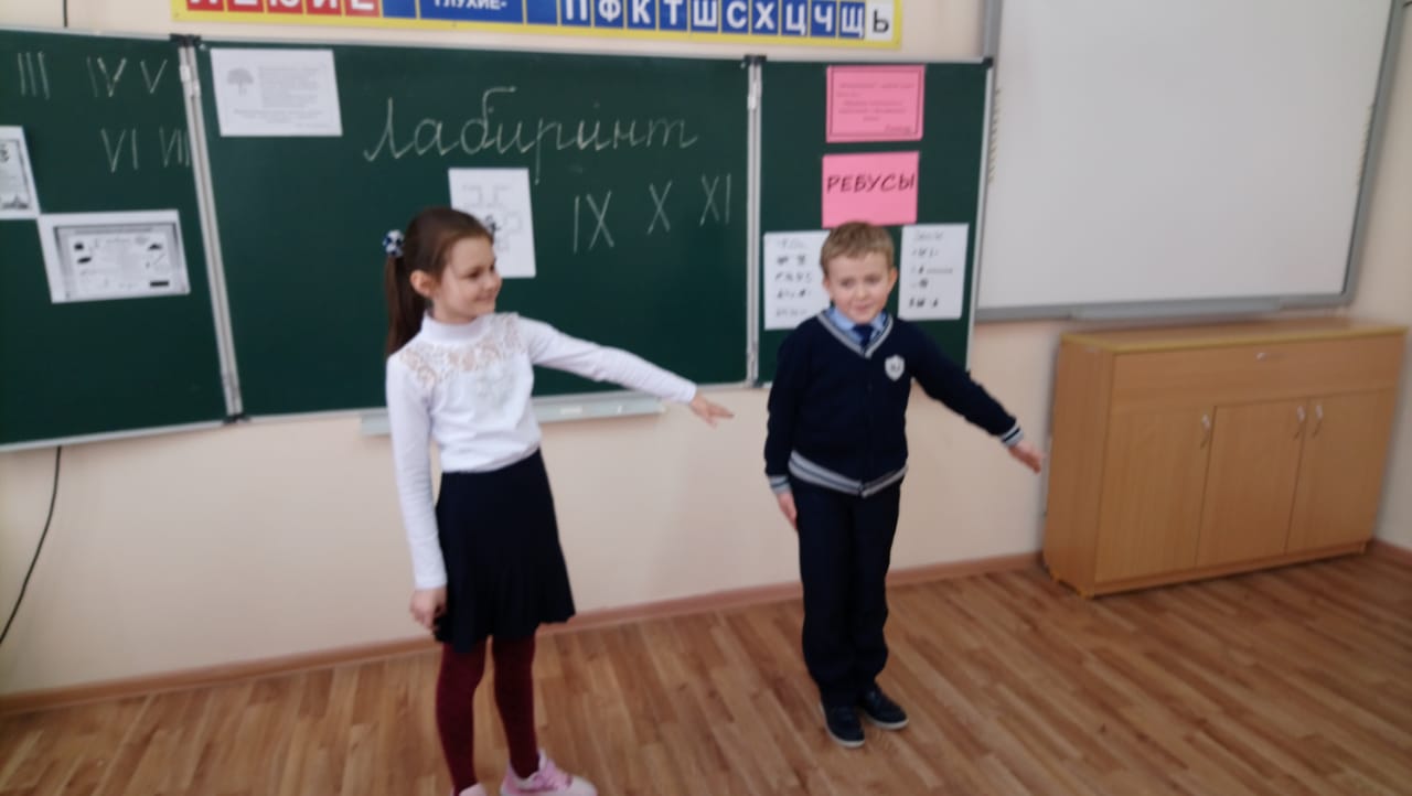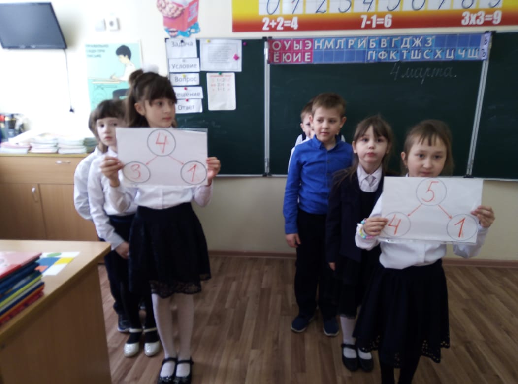 4 марта первоклассники побывали "В мире математики". Они дружно решали занимательные задачки, отгадывали ребусы, состязались в вычислениях. А во время перемены дружно изображали цифры.
