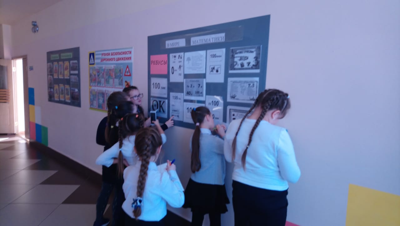 А во время больших перемен в фойе первого и второго этажа ребят ждал Математический калейдоскоп: загадки, ребусы, шарады, головоломки, пословицы.