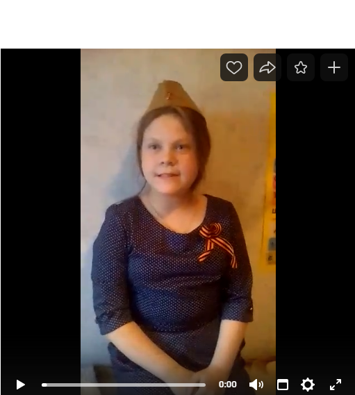 Алешина Юлия, ученица 4б класса, читает стихотворение ко Дню Победы!