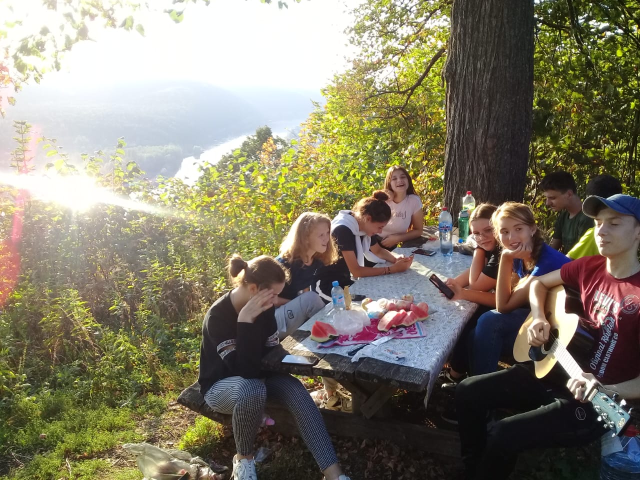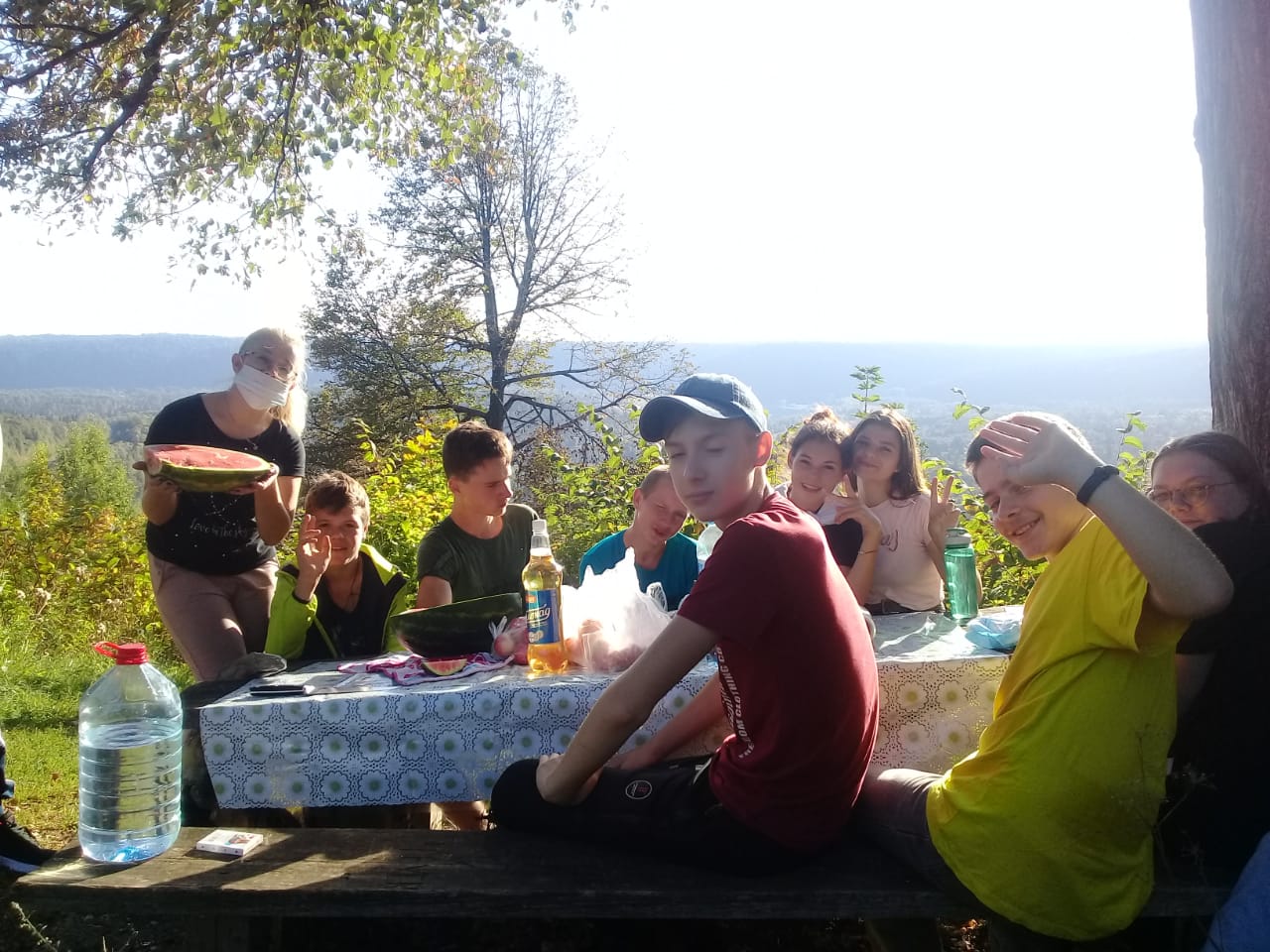 Вот такой весёлой и дружной компанией обучающиеся 9а класса вместе с классным руководителем, Людмилой Владимировной Иконниковой, сходили в поход на Лысую гору. Ребята отдохнули на свежем воздухе, пели песни под гитару, пообщались после долгих каникул. Провели прекрасный насыщенный день!