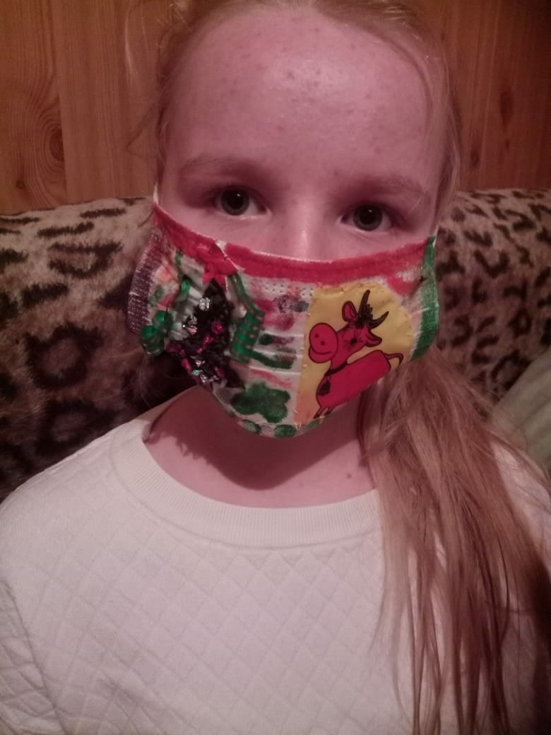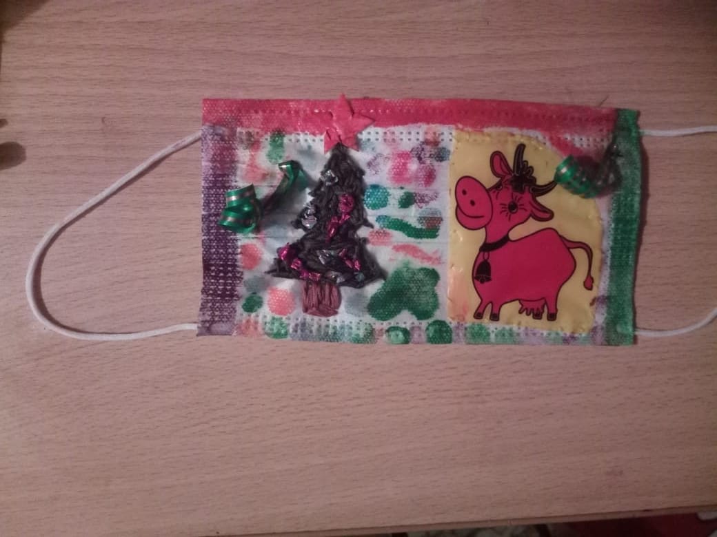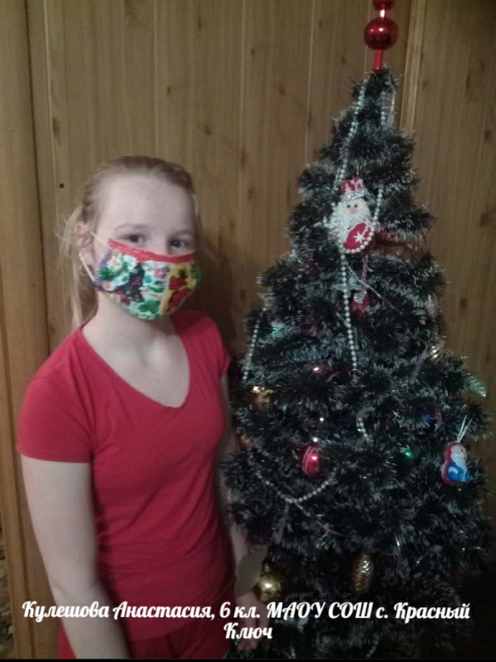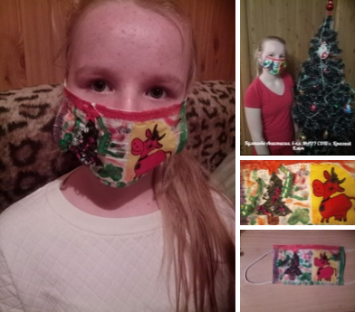 Кулешова Анастасия, 6а класс, участница районного конкурса новогодних медицинских масок "Корона 2021".