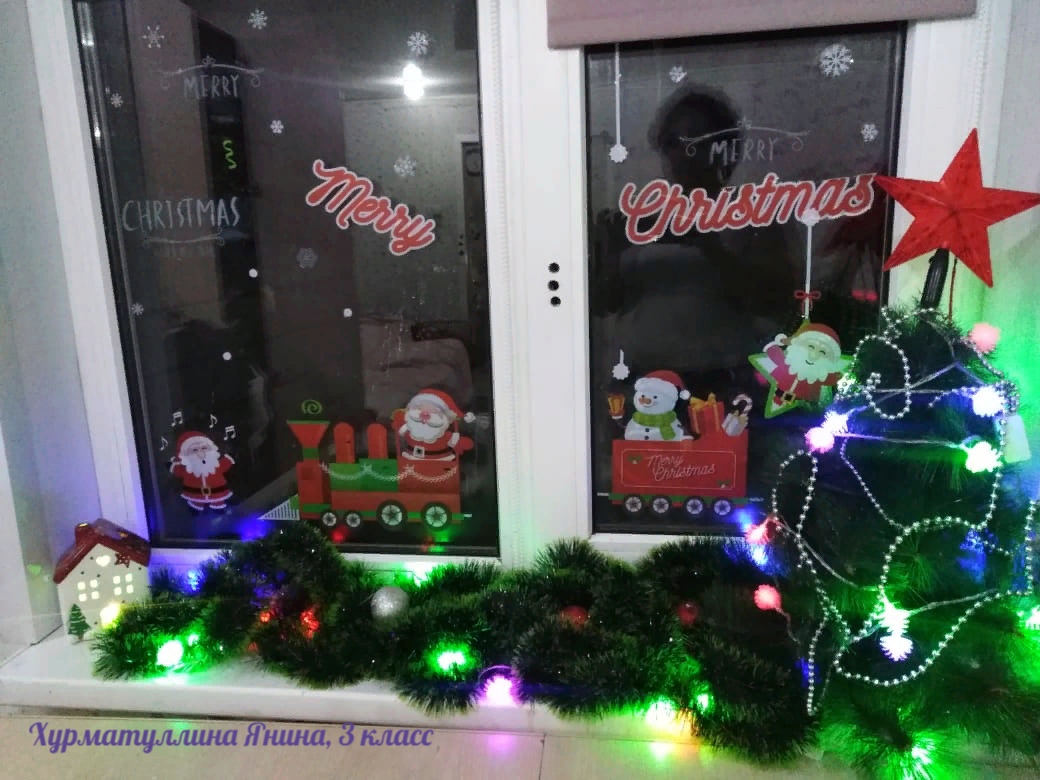 Новогодние окна Хурматуллиной Янины, 3 класс, Шушанян Марии и Корепановой Галины, 6б класс от учащихся МАОУ СОШ с. Красный Ключ