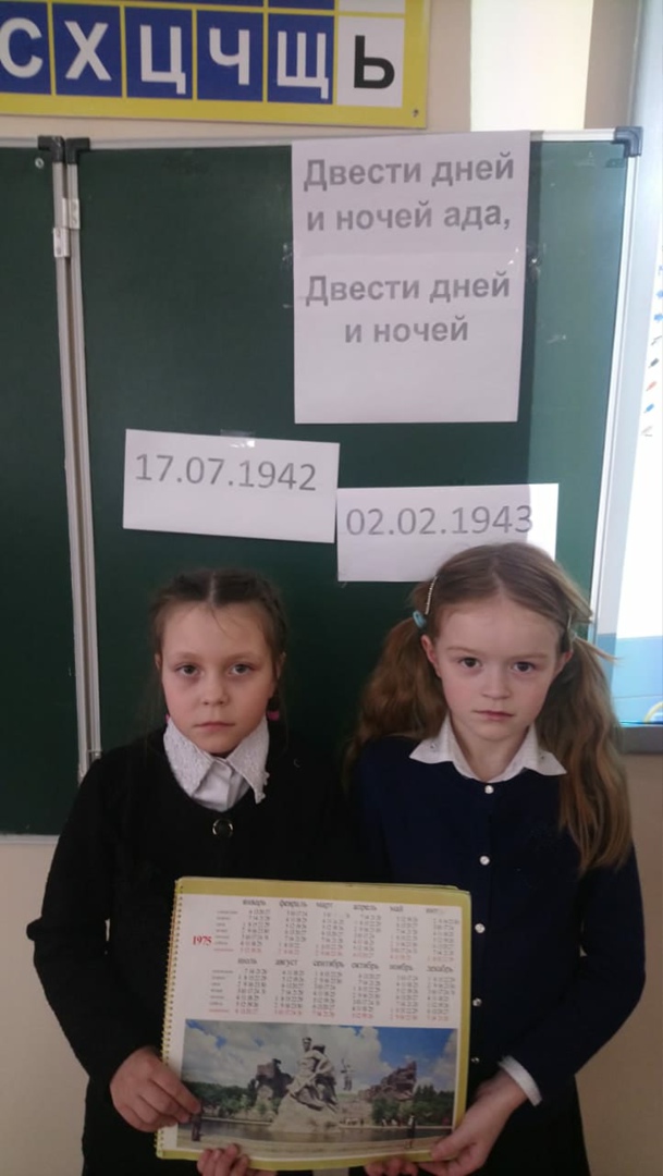 2 февраля - День разгрома советскими войсками немецко-фашистких войск в Сталинградской битве. Во 2б классе прошел классный час, посвященный этой памятной дате. Классный руководитель Александрова Марина Владимировна ознакомила обучающихся с событиями Сталинградской битвы.
