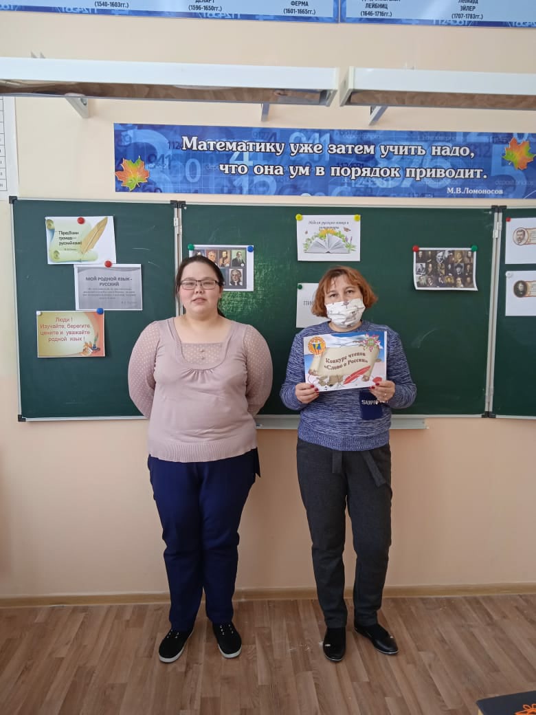 Учащиеся углубили знания о великих русских поэтах, познакомились с произведениями писателей. В борьбе за звание "Лучший чтец стихотворения о России" в конкурсе "Стихи о России" победила Хисимова Алина - 1 место, 2 место по праву заняла Макарова Арина, 3 место поделили Сафиуллина Камила и Александров Илья.