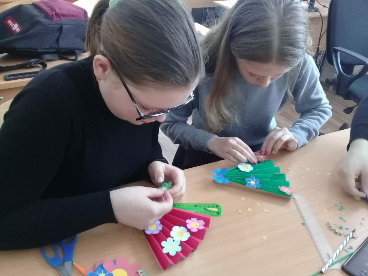 Обучающиеся 9а класса подготовили поздравительные открытки своим любимым мамам на 8 Марта.