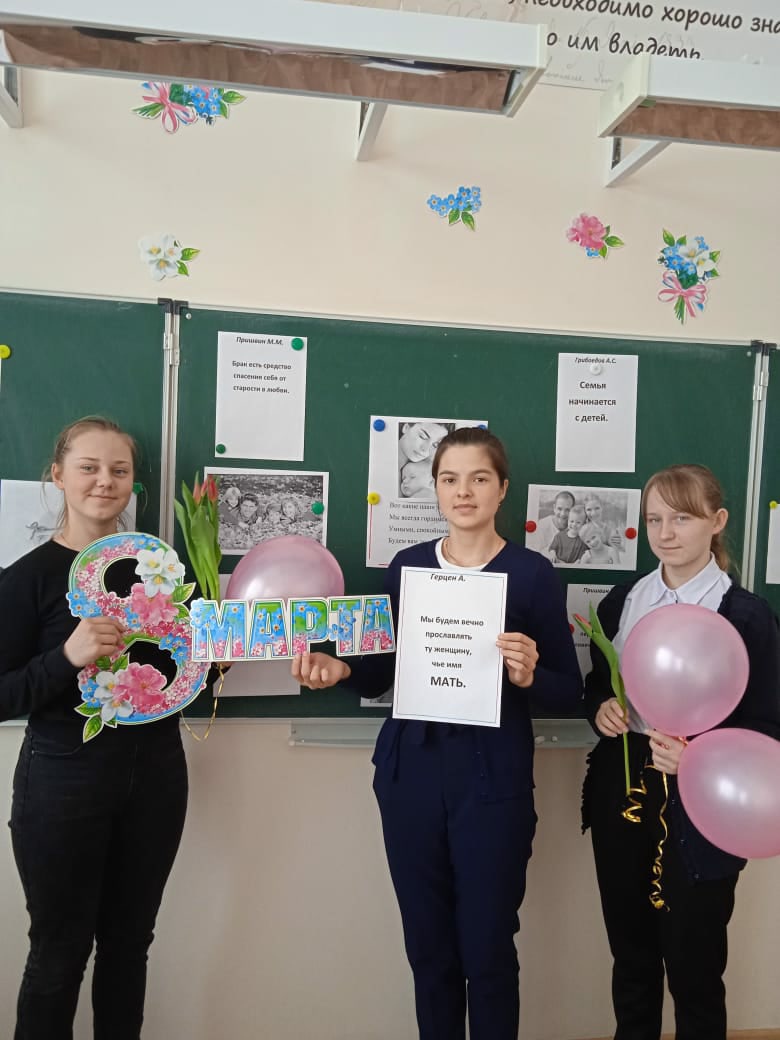В 9 б классе в ожидании весеннего женского праздника - 8 Марта прошёл классный час " Мы будем вечно прославлять ту женщину, чьё имя мать!"