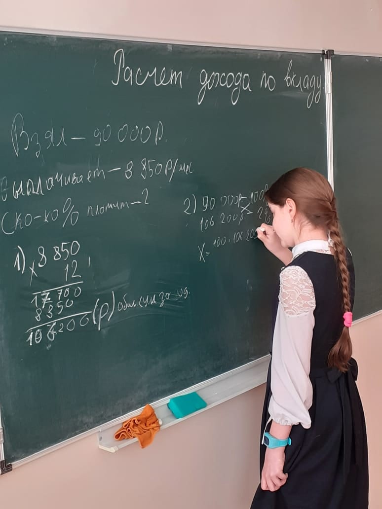 В рамках всероссийской Недели финансовой грамотности Иконникова Людмила Владимировна и Жеребцова Марина Юрьевна подготовили и провели уроки математики "Расчет дохода по вкладу" и "Экономика - наука сложная, но интересная". Ребята решали интересные экономические задачи, соревновались в разгадывании загадок, анаграмм.
