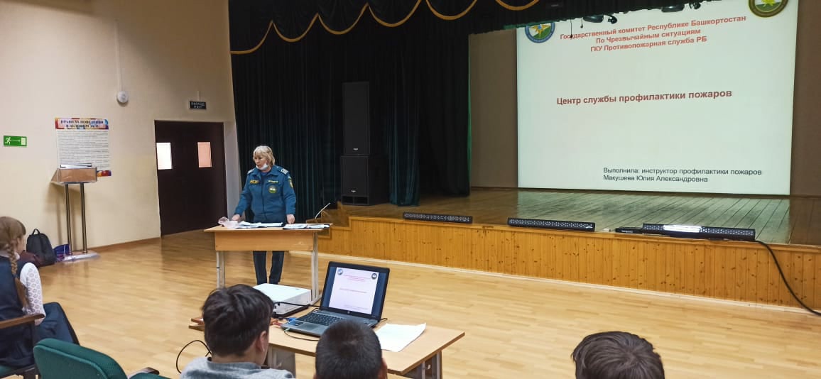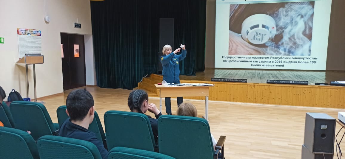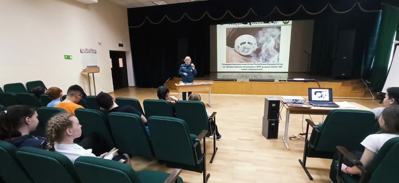 28 апреля, во Всемирный День охраны труда, накануне Дня пожарной охраны, для обучающихся 6 классов с беседой по пожарной безопасности выступила инструктор по профилактике пожаров Государственного комитета РБ по чрезвычайным ситуациям ГКУ Противопожарной службы РБ Фаттахова З.З. Она ознакомила ребят с правила поведения при возникновении чрезвычайных ситуаций, как правильно действовать при пожаре, рассказала о правилах поведения в лесу. В конце мероприятия все ребята получили памятки по правилам пожарной безопасности.