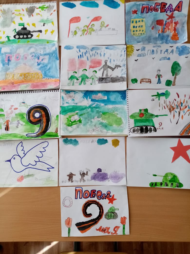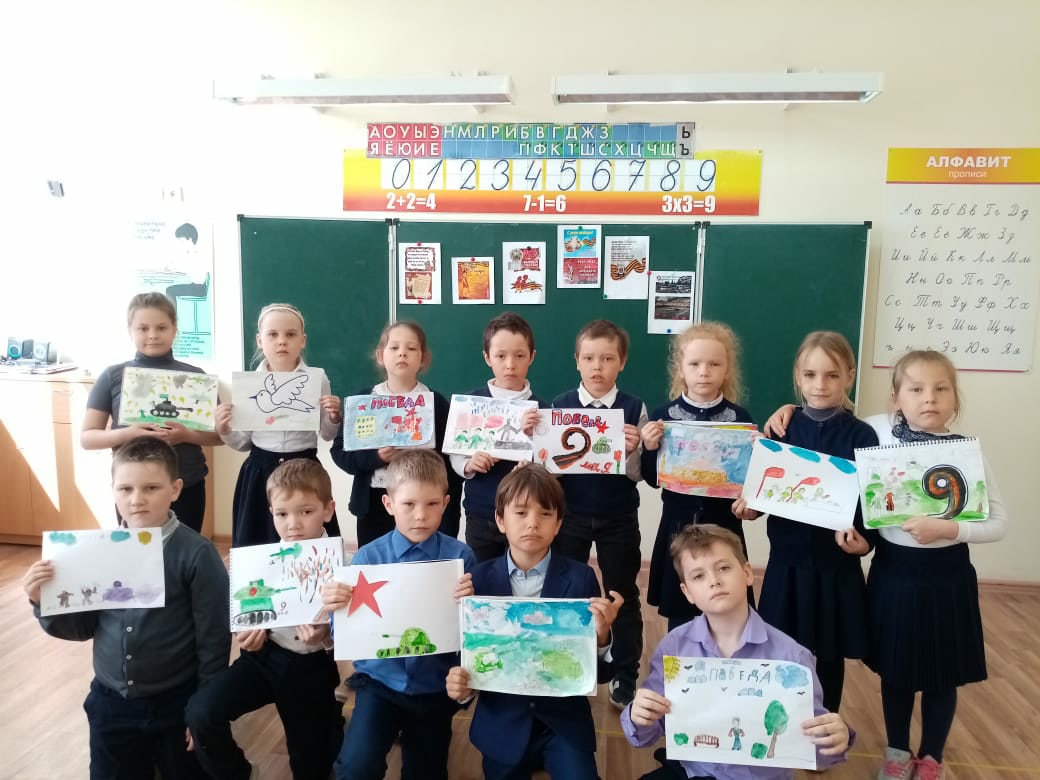 В 1а классе прошёл классный час «День Победы». Ребята подготовили выставку рисунков, посвящённых Великой Отечественной войне. Классный руководитель Пащенко Татьяна Яковлевна познакомила детей с историческими событиями 1941-1945 гг., рассказала о том, что с каждым годом все дальше и дальше уходят события военной поры. Но время не имеет власти над тем, что люди пережили в войну. Это было очень трудное время. Советские солдаты смело смотрели в глаза смертельной опасности.