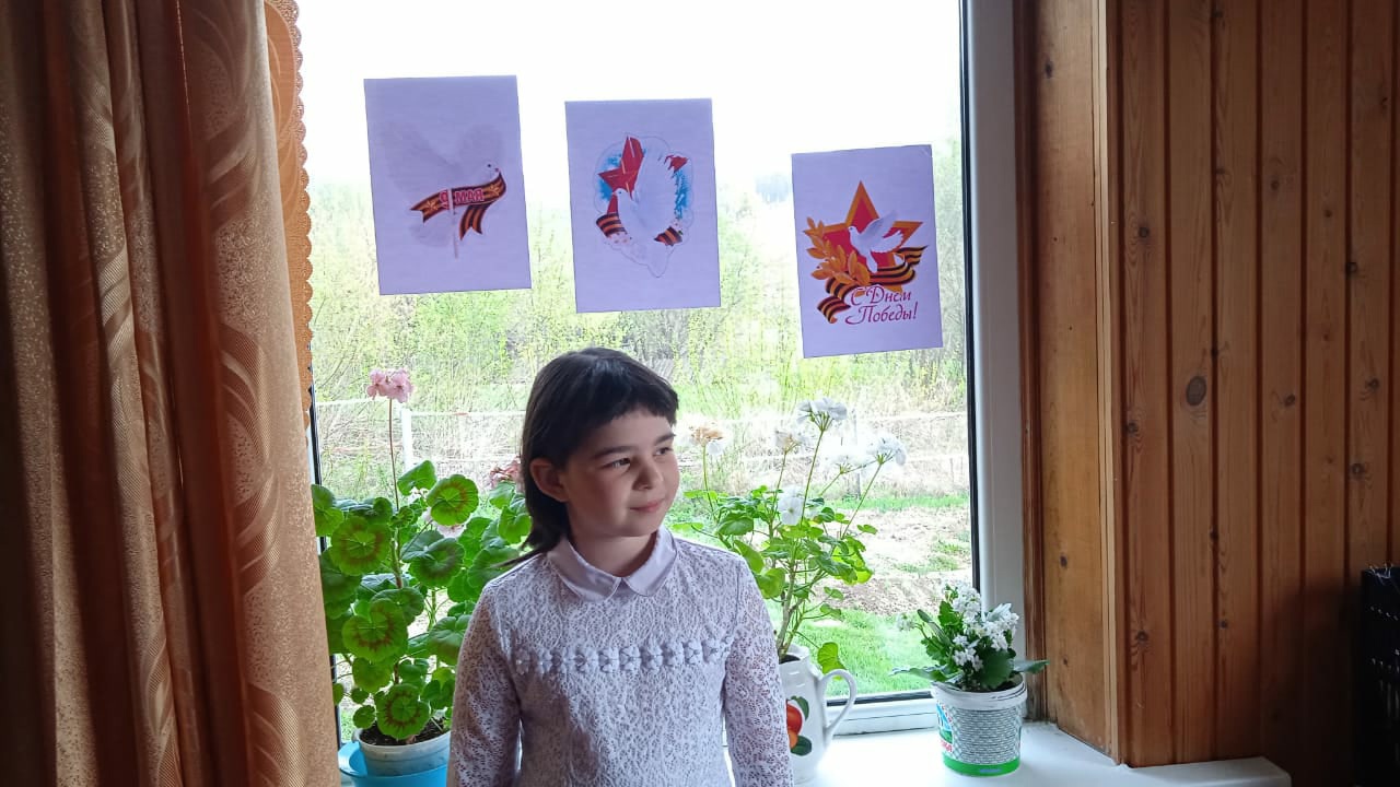 Климина Амелия, ученица 3 класса. Флешмоб "Окно Победы".