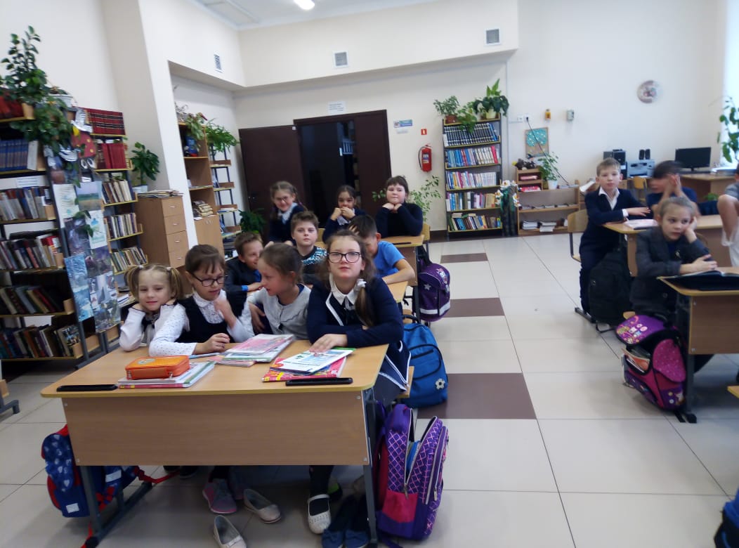 В международный день школьных библиотек ученики 1 а, 1 б, 4 б классов посетили нашу школьную библиотеку. Педагог-библиотекарь Наталья Сергеевна Байметова провела для первоклассников экскурсию по библиотеке, ознакомила с абонементом книг и читательским формуляром. Затем ребята просмотрели интересный фильм "Откуда пришла книга".