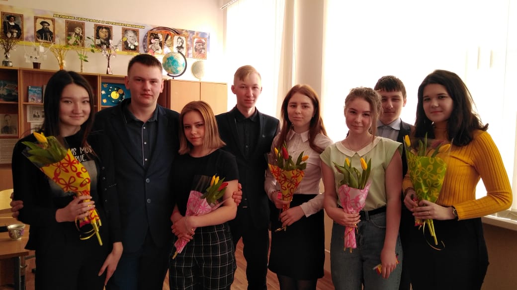В замечательный солнечный день наши девочки принимают поздравления от мальчиков.