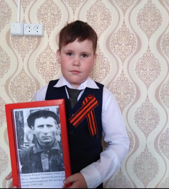 Газизов Ростислав, ученик 2 класса, присоединяется к акции "Бессмертный полк".