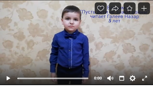 Галеев Назар, 5лет, воспитанник ГДО, читает стихотворение Г.Н.Владимирова "Пусть дети не знают войны..."