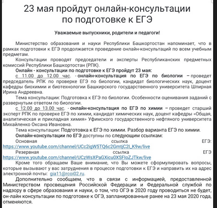Онлайн - консультации по подготовке к ЕГЭ пройдут 23 мая: