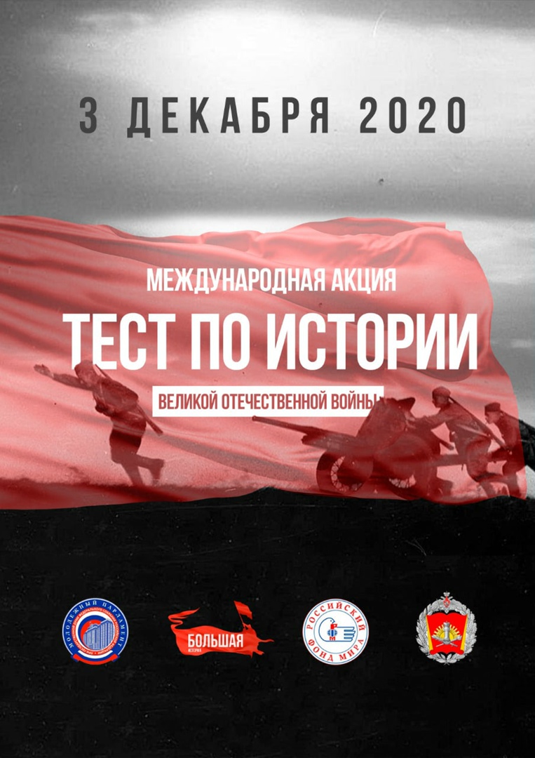 3 декабря 2020 года, в День Неизвестного Солдата, состоится масштабная международная акция «Тест по истории Великой Отечественной войне».