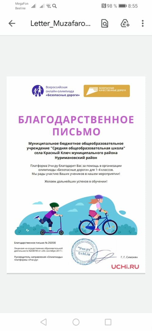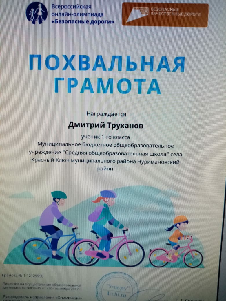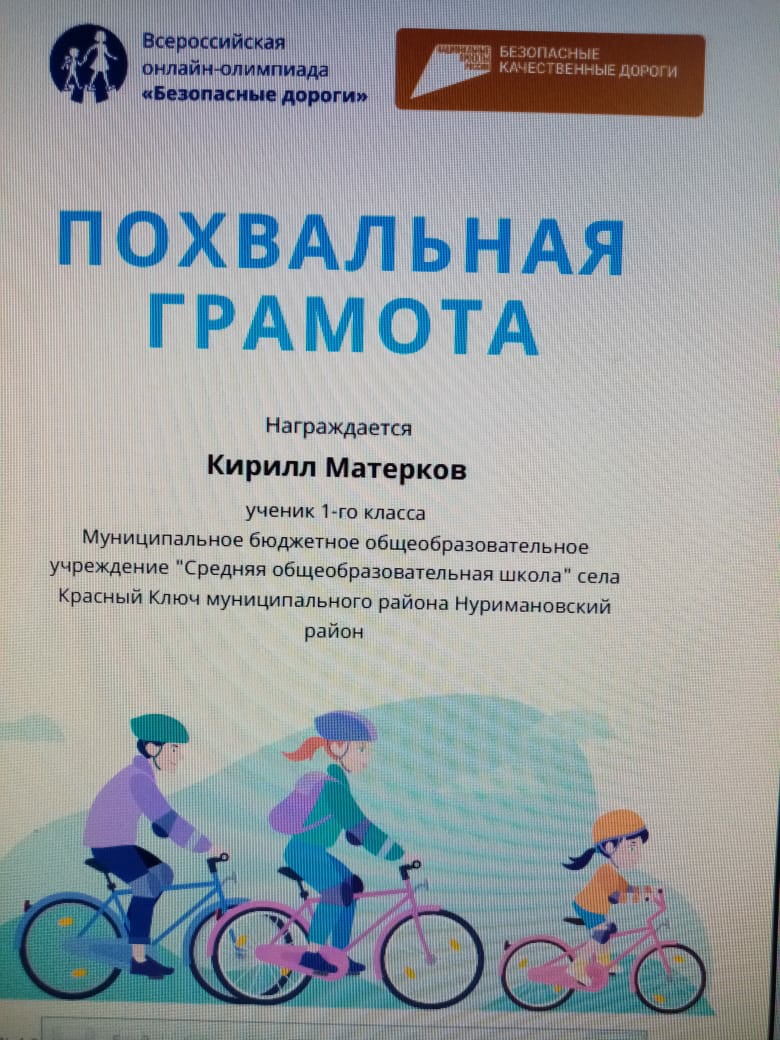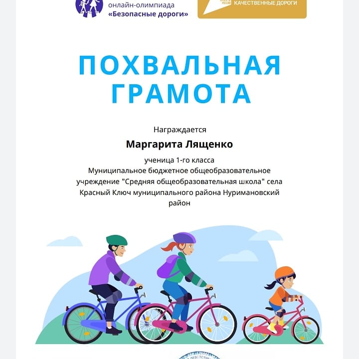 В рамках информационной кампании национального проекта «Безопасные и качественные автомобильные дороги» в период с 30 ноября по 11 декабря 2020 года на образовательной платформе Учи.ру проводилась всероссийская онлайн-олимпиада «Безопасные дороги» на знание основ безопасного поведения на дорогах для школьников 1-4 классов.