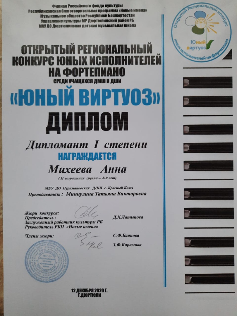 12 декабря прошёл открытый региональный конкурс юных исполнителей на фортепиано среди учащихся ДМШ и ДШИ "Юный виртуоз" на базе ДМШ города Дюртюли.