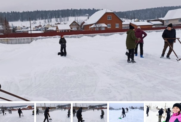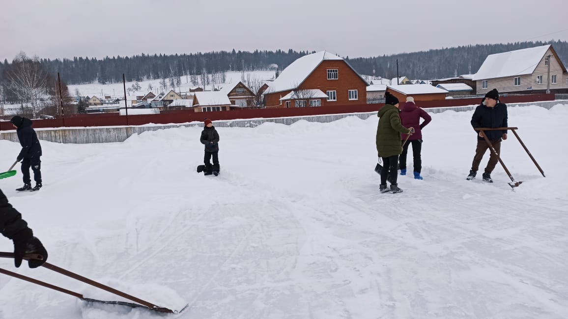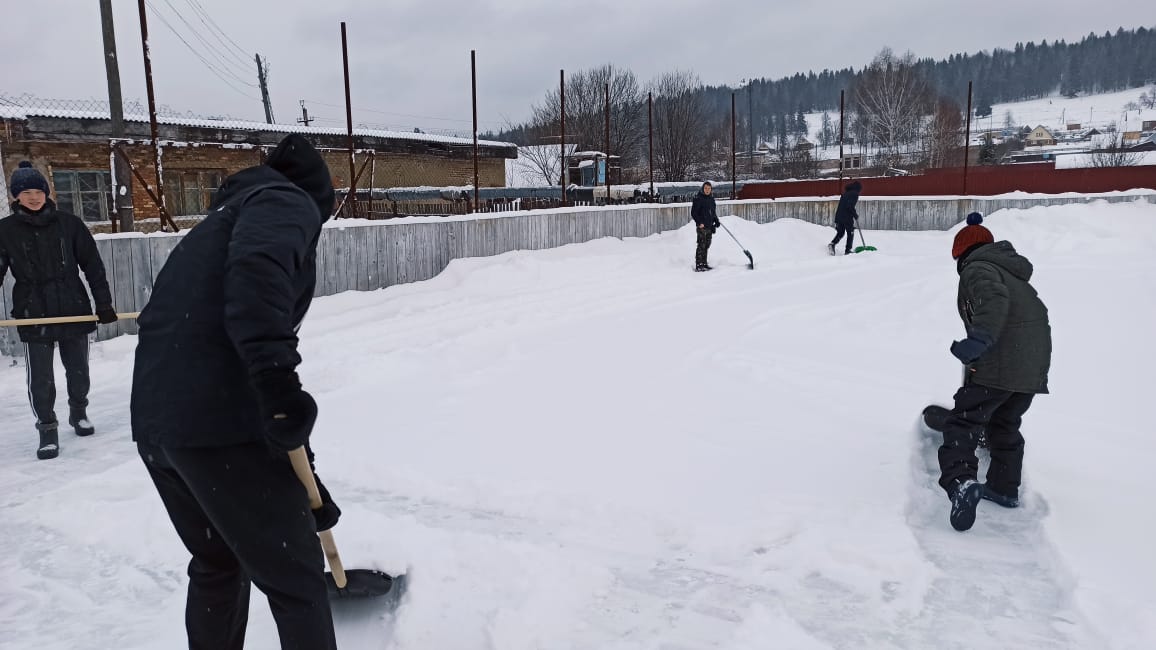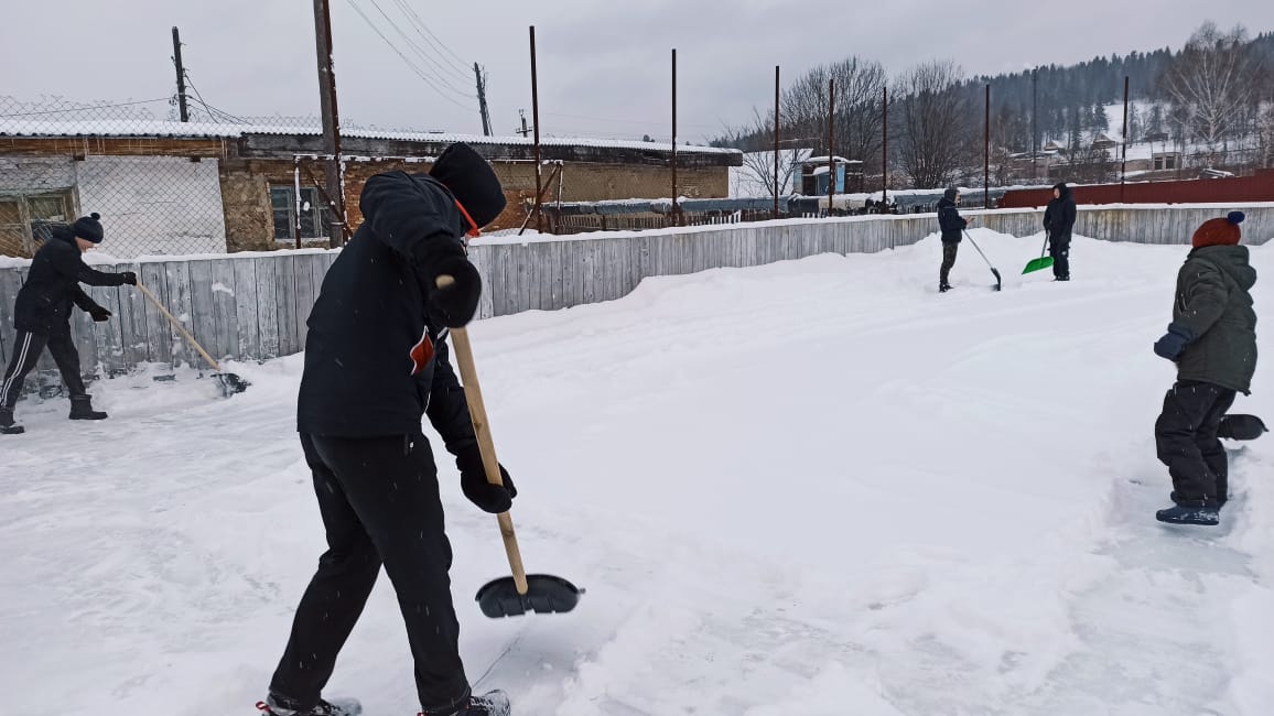присоединились к акции. Они помогли очистить от снега хоккейную коробку